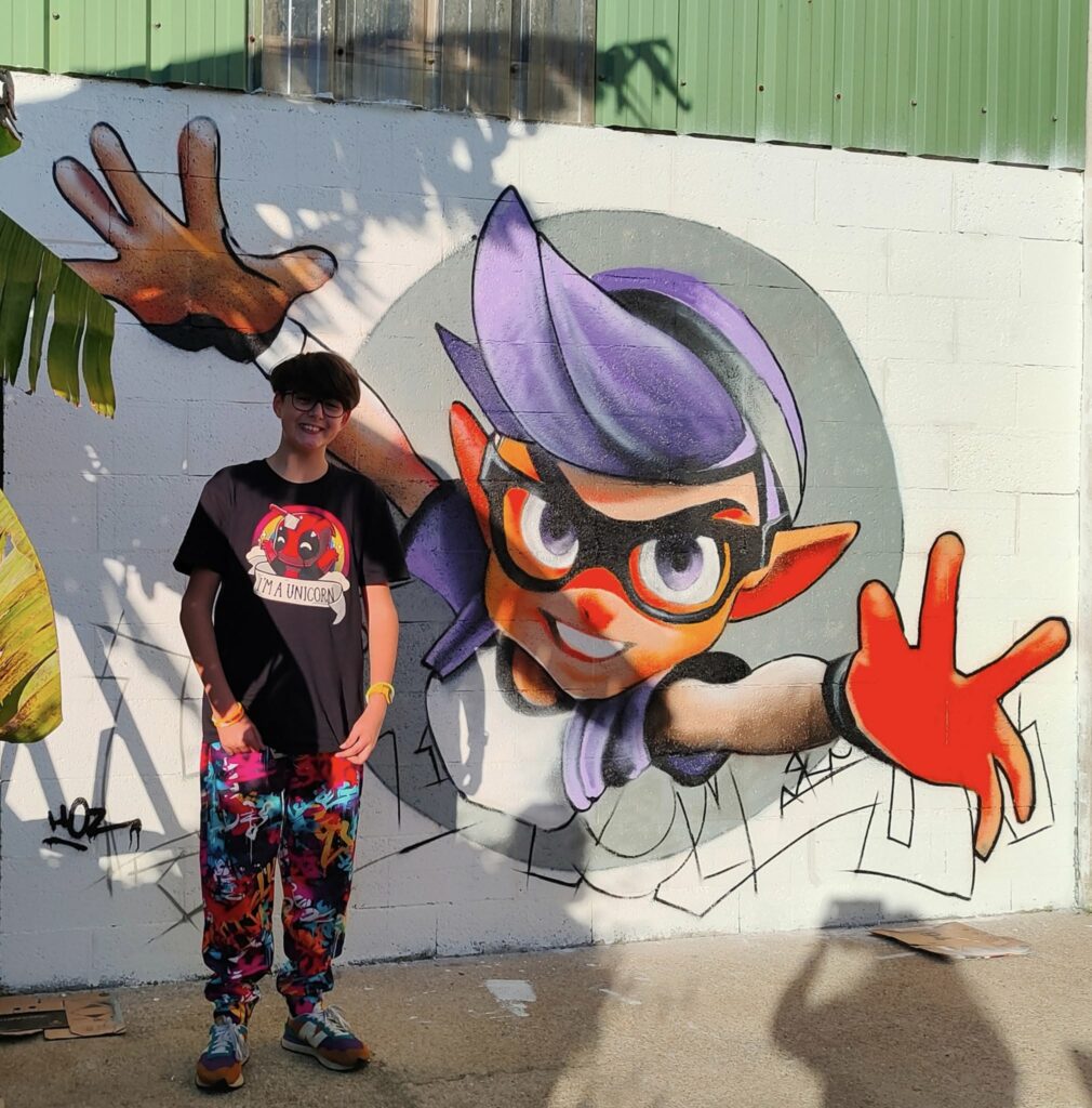 Portrait d’un personnage du jeu vidéo « Splatoon » réalisé par le graffeur HOZ à la demande de Kleoven pour son 12e anniversaire.