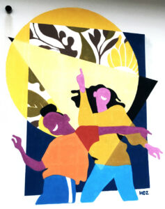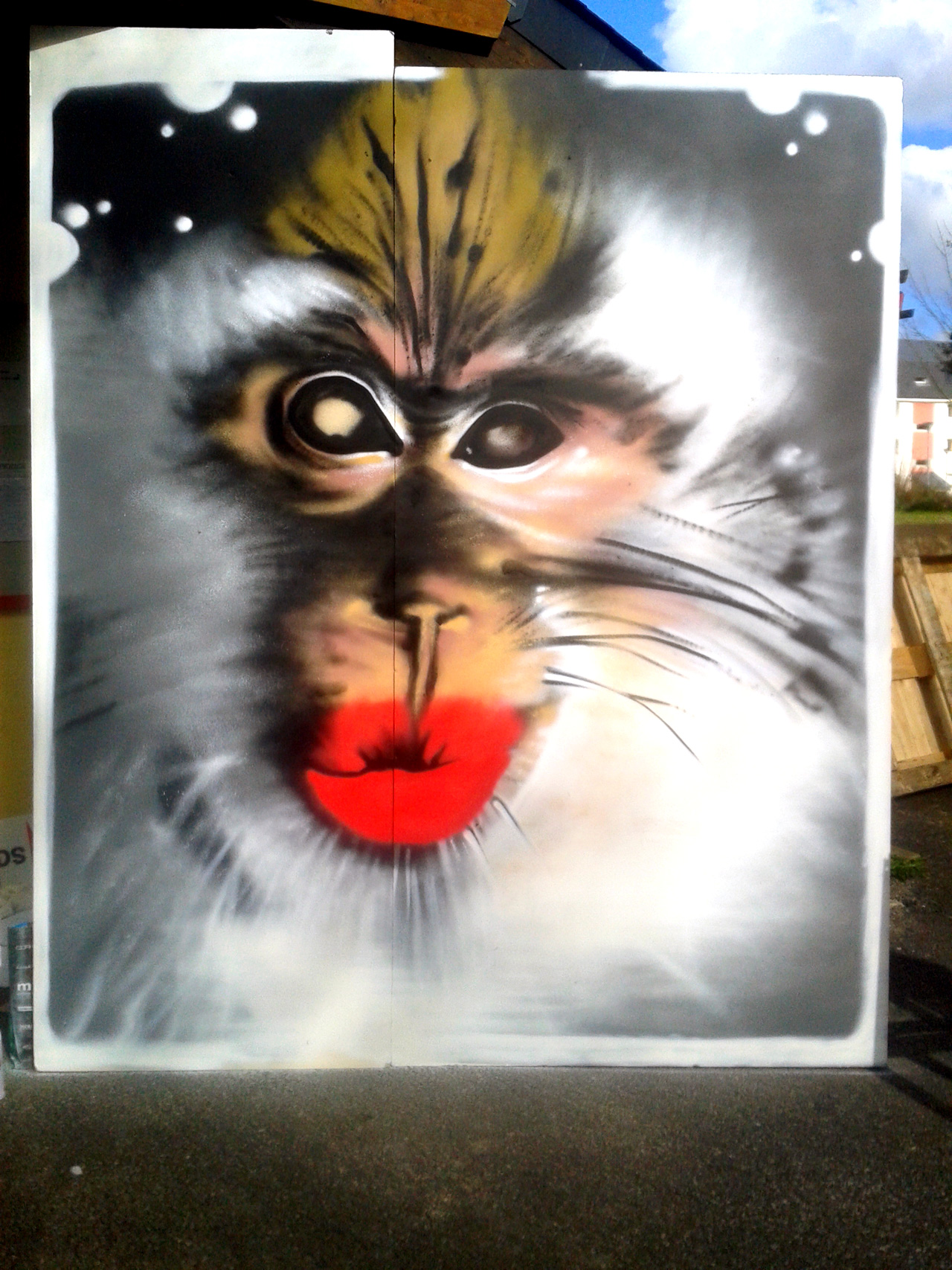 Dimension : 1,50m x 2,50m. Technique : aérosol et pochoirs (PP).